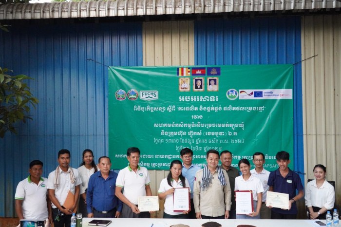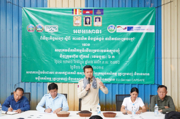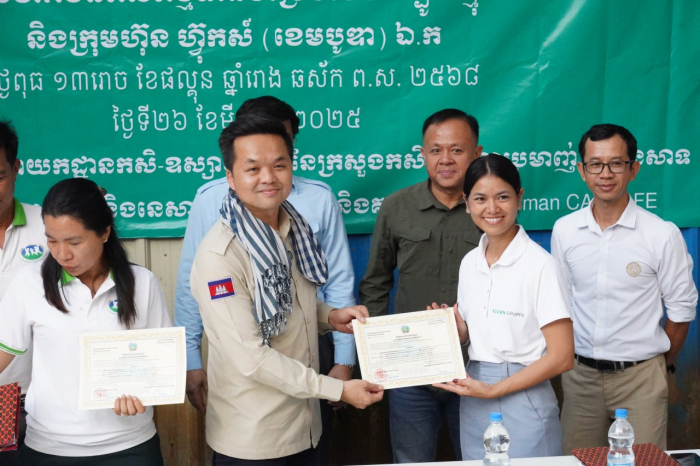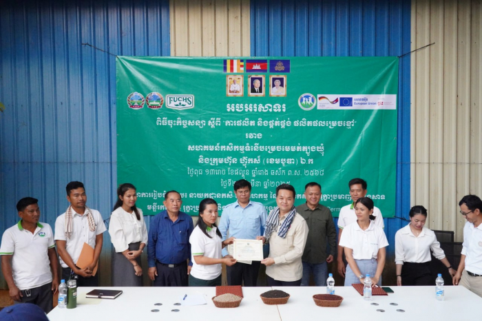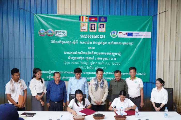 នៅថ្ងៃទី២៦ ខែមីនា ឆ្នាំ២០២៥ ឯកឧត្តម ឃឹម ហ្វីណង់ អនុរដ្ឋលេខា ធិការ ក្រសួង កសិកម្ម រុក្ខាប្រមាញ់ និងនេសាទ រួមជាមួយនាយកដ្ឋាន កសិ- ឧស្សាហកម្ម នាយកដ្ឋានអភិវឌ្ឍន៍សហគមន៍កសិកម្ម និងមន្ទីរកសិកម្ម រុក្ខាប្រមាញ់ និងនេសាទ ខេត្តត្បូងឃ្មុំ បានអញ្ជើញជាសក្ខីភាព ក្នុងពិធី ចុះហត្ថលេខា លើកិច្ច សន្យា ស្តីពី «ការផលិត និងផ្គត់ផ្គង់ ម្រេចស្ងួត» រវាងសហគមន៍កសិកម្ម ទំនើបម្រេចមេម៉ត់ត្បូងឃ្មុំ ជាមួយ នឹង ក្រុមហ៊ុន ហ៊្វុកស៍ (ខេមបូឌា) ឯ.ក នៅក្នុង ខេត្តត្បូងឃ្មុំ។