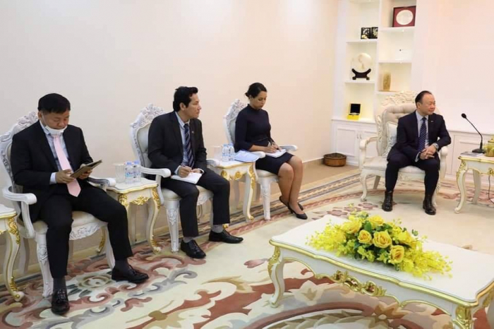 នៅទីស្តីការក្រសួង នាវេលាម៉ោង ១៤:០០ ថ្ងៃពុធ ១កើត ខែពិសាខ ឆ្នាំជូត ទោស័ក ព.ស. ២៥ ៦៣ ត្រូវនឹងថ្ងៃទី២២ ខែមេសា ឆ្នាំ២០២០ ឯកឧត្តមរដ្ឋមន្ត្រី វេង សាខុន បានទទួលជួបឯកឧត្តម Pablo Kang ឯកអគ្គរដ្ឋទូតអូស្រ្តាលីប្រចាំព្រះរាជាណាចក្រកម្ពុជា និងសហការីដើម្បីសំដែងការគួរសម និងពិភាក្សាការងារពាក់ព័ន្ធនឹងកិច្ចសហប្រតិបត្តិការទ្វេភាគី និងពិនិត្យឡើង វិញលើជំនួយឧបត្ថម្ភរបស់រដ្ឋាភិបាលអូស្រ្តាលីដើម្បីបន្តគាំទ្រដល់ការអភិវឌ្ឍវិស័យកសិកម្មកម្ពុជា និងជាពិសេសស្ថិតក្នុងស្ថានភាពដែលរាជរដ្ឋាភិបាលកម្ពុជាបាននិងកំពុងប្រយុទ្ធប្រឆាំងជំងឺឆ្លងសកលកូវីដ-១៩ វិស័យកសិកម្មបានដើរតួនាទីយ៉ាងសំខាន់ក្នុងការធានាសន្តិសុខស្បៀងដើម្បីរក្សានិរន្តរភាពនៃជីវភាពប្រចាំថ្ងៃរបស់ប្រជាពលរដ្ឋ និងទ្រទ្រង់សេដ្ឋកិច្ចជាតិ។ ក្នុងបរិបទនេះ ឯកឧត្តម Kang បានសម្តែងនូវចេតនាចង់ពិភាក្សាជាមួយឯកឧត្តមរដ្ឋមន្រ្តីផងដែរក្នុងនាមរដ្ឋាភិបាលអូស្រ្តាលីថាតើត្រូវធ្វើយ៉ាងណាដើម្បីជួយគាំទ្រ និងចូលរួមដោះស្រាយបញ្ហានេះ។