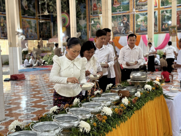 ក្នុងឱកាសពិធីកាន់បិណ្ឌ១២ ក្រុមការងារក៏បាននាំយកនូវទេយ្យទាន វេរប្រគេនដល់ព្រះសង្ឃ ដែលគង់ចាំព្រះវស្សាអស់កាលត្រីមាសនិងជូនក្រមាដល់តាជី យាយជី និងពុទ្ធបរិស័ទសរុបប្រមាណ១៧០នាក់។