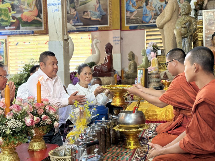 ជាមួយគ្នានោះក៏បានធ្វើពិធីរាប់បាត្រ បង្សុកូលឧទ្ទិសកុសលផលបុណ្យ ជូនដល់ដួងវិញ្ញាណក្ខន្ធ ចំពោះមាតាបិតា ជីដូនជីតា ញាតិការទាំង៧សន្តាន ដែលបានចែកឋានទៅកាន់លោកខាងមុខ ព្រមទាំងឧទ្ទិសកុសលដល់ដួងវិញ្ញាណក្ខន្ធ កម្មាភិបាល វរកងទ័ព ដែលបានពលីជីវិតក្នុងបុព្វហេតុការពារ ជាតិមាតុភូមិកម្ពុជា និង សូមមកទទួលយកមគ្គផលដែលបានឧទ្ទិសជូនតាមរយៈព្រះសង្ឃ ក្នុងរដូវកាលបុណ្យកាន់បិណ្ឌ និងភ្ជុំបិណ្ឌនេះ សូមឱ្យអំណាចនៃអានិសង្ឃនេះ ជួយទ្រទ្រង់ឱ្យវិញ្ញាណក្ខន្ធអ្នកទាំងនោះ បានទៅកាន់ ក្នុងឋានសុគតិភពកុំបីខានឡើយ៕