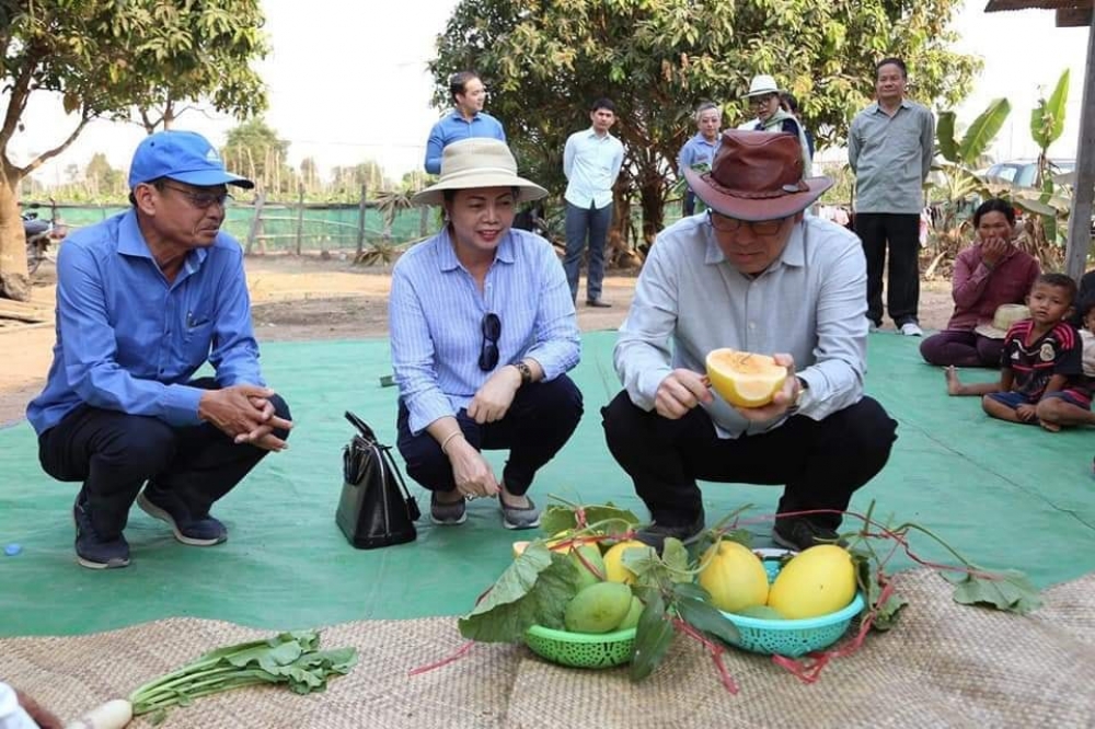 ឯកឧត្តមរដ្ឋមន្ត្រី វេង សាខុន និងសហការីបានអញ្ជើញមកពិនិត្យចំការត្រសក់ផ្អែម និងបន្លែរួមផ្សំមួយចំនួនទៀតរបស់កសិករ ណូយ ណែម