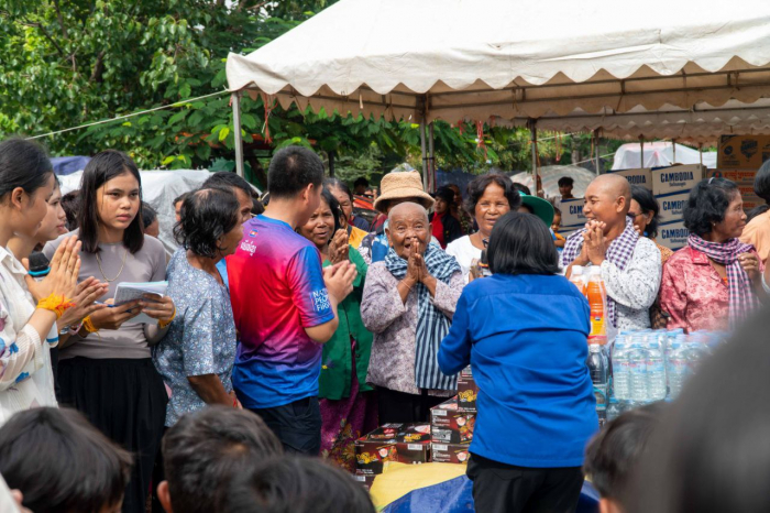នៅថ្ងៃទី២៧ ខែកក្កដា ឆ្នាំ២០២៥ ឯកឧត្តម ឃុន សាវឿន រដ្ឋលេខាធិការក្រសួងកសិកម្ម រុក្ខាប្រមាញ និងនេសាទ និងជាប្រធានក្រុមការងាររាជរដ្ឋាភិបាលចុះមូលដ្ឋានស្រុកវ៉ារិន និងជាតំណាងដ៏ខ្ពង់ខ្ពស់ ឯកឧត្តមរដ្ឋមន្រ្តី ឌិត ទីណា ដោយមានការអមដំណើរពីសំណាក់ លោក ធិននី វិធូរ អភិបាល នៃគណៈអភិបាលស្រុកវ៉ារិន ខេត្តសៀមរាប និងអាជ្ញាធរមូលដ្ឋាន បានបន្ដដំណើរចុះសួរសុខទុក្ខ និងនាំយកស្បៀងអាហារ និងសម្ភារប្រើប្រាស់ផ្សេងៗ របស់សប្បុរសជន ជូនទៅប្រជាពលរដ្ឋចំនួន១ ៨៣៩នាក់ ស្មើនឹង៨៨៦គ្រួសារ ដែលរងគ្រោះពីការវាយប្រហាររបស់យោធាថៃ និងបានជម្លៀសមកកាន់វត្តស្រែណូយ ស្ថិតនៅស្រុកវ៉ារិន ខេត្តសៀមរាប។
