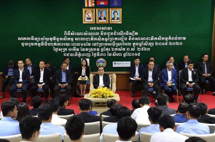 នៅសាកលវិទ្យាល័យភូមិន្ទកសិកម្ម (Royal University of Agriculture, RUA) នារសៀលថ្ងៃសុក្រ ១កើត ខែភទ្របទ ឆ្នាំកុរ ឯកស័ក ព.ស. ២៥៦៣ ត្រូវនឹងថ្ងៃទី៣០ ខែសីហា ឆ្នាំ ២០១៩ ឯកឧត្តម វេង សាខុន រដ្ឋមន្រ្តីក្រសួងកសិកម្ម រុក្ខាប្រមាញ់ និងនេសាទ បានអញ្ជើញជាអធិបតីក្នុងពិធីសំណេះសំណាលជាមួយនិស្សិតដែលនឹងត្រូវចេញដំណើរទៅហាត់ការសម្រាប់ឆ្នាំសិក្សា២០១៩ -២០២០ ជំនាន់ទី១២ ចំនួន១៦៩នាក់ នៅប្រទេសអ៊ីស្រាអែល។ ពិធីនេះ ក៏មាន ការអញ្ជើញចូលរួមផងដែរពីសំណាក់ឯកឧត្តម លោកជំទាវជាថ្នាក់ដឹកនាំក្រសួង ឯកឧត្តមសាកលវិទ្យាធិការ សាស្រ្តាចារ្យ លោកគ្រូ អ្នកគ្រូ និងនិស្សិតយ៉ាងច្រើនប្រមាណ ២០០នាក់។
