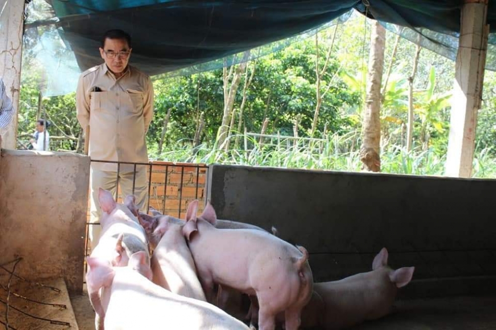 បន្ទាប់ពីបានចុះពិនិត្យកសិដ្ឋានបន្លែសរីរាង្គរួចមក ឯកឧត្តមរដ្ឋមន្ត្រី និងសហការីបានបន្តដំណើរមកពិនិត្យកសិដ្ឋានចិញ្ចឹមគោ និងជ្រូករបស់កសិករកៅ ប៊ុនទី នៅភូមិទឹកប៉ោង ឃុំបឹងទ្រាវ ស្រុកស្រែអំបិល ខេត្តកោះកុង។ បច្ចុប្បន្ន កសិដ្ឋានចិញ្ចឹមគោសាច់ចំនួន ៨០ក្បាល និងបានសហការជាមួយក្រុមហ៊ុមស៊ីភីកម្ពុជាចិញ្ចឹមជ្រូកសាច់ចំនួន ៥៦០ក្បាលទៀត លើផ្ទៃដីជាង ៣០ហត។ ពិនិត្យឃើញការរីកចម្រើនរបស់កសិដ្ឋាន និងសង្ឃឹមថាតាមរយ:ផលិតកម្មសត្វនឹងជួយកែប្រែកម្រិតជីវភាព បង្កើនប្រាក់ចំណូល និងកាត់បន្ថយការនាំចូល ឯកឧត្ដមរដ្ឋមន្ត្រី បានចូលរួមសាទរ គាំទ្រ និងលើកទឹកចិត្តឲ្យកសិកររូបនេះ និងជាពិសេសកសិករទូទាំងប្រទេសដែលប្រកាន់យករបរចិញ្ចឹមសត្វ ឲ្យខិតខំយកចិត្តទុកដាក់បន្ថែមទៀតទាំងការងារបច្ចេកទេស ការបង្កើនគុណភាពចិញ្ចឹមដើម្បីធ្វើការប្រកួតប្រជែងទីផ្សារ។ ឯកឧត្តមរដ្ឋមន្ត្រីបានណែនាំឲ្យមន្ទីរកសិកម្ម រុក្ខាប្រមាញ់ និងនេសាទខេត្តកោះកុង និងអគ្គនាយកដ្ឋានផលិតកម្មសត្វ និងសុខភាពសត្វចុះមកជួយផ្សព្វផ្សាយការងារបច្ចេកទេស បង្កាត់ពូជ និងផ្សព្វផ្សាយច្បាប់ដើម្បីជាប្រយោជន៍ក្នុងការជួយង្កើនប្រសិទ្ធភាពផលិតកម្មចោិញ្ចឹមសត្វ និងការអនុវត្តច្បាប់នានាដែលពាក់ព័ន្ធ។